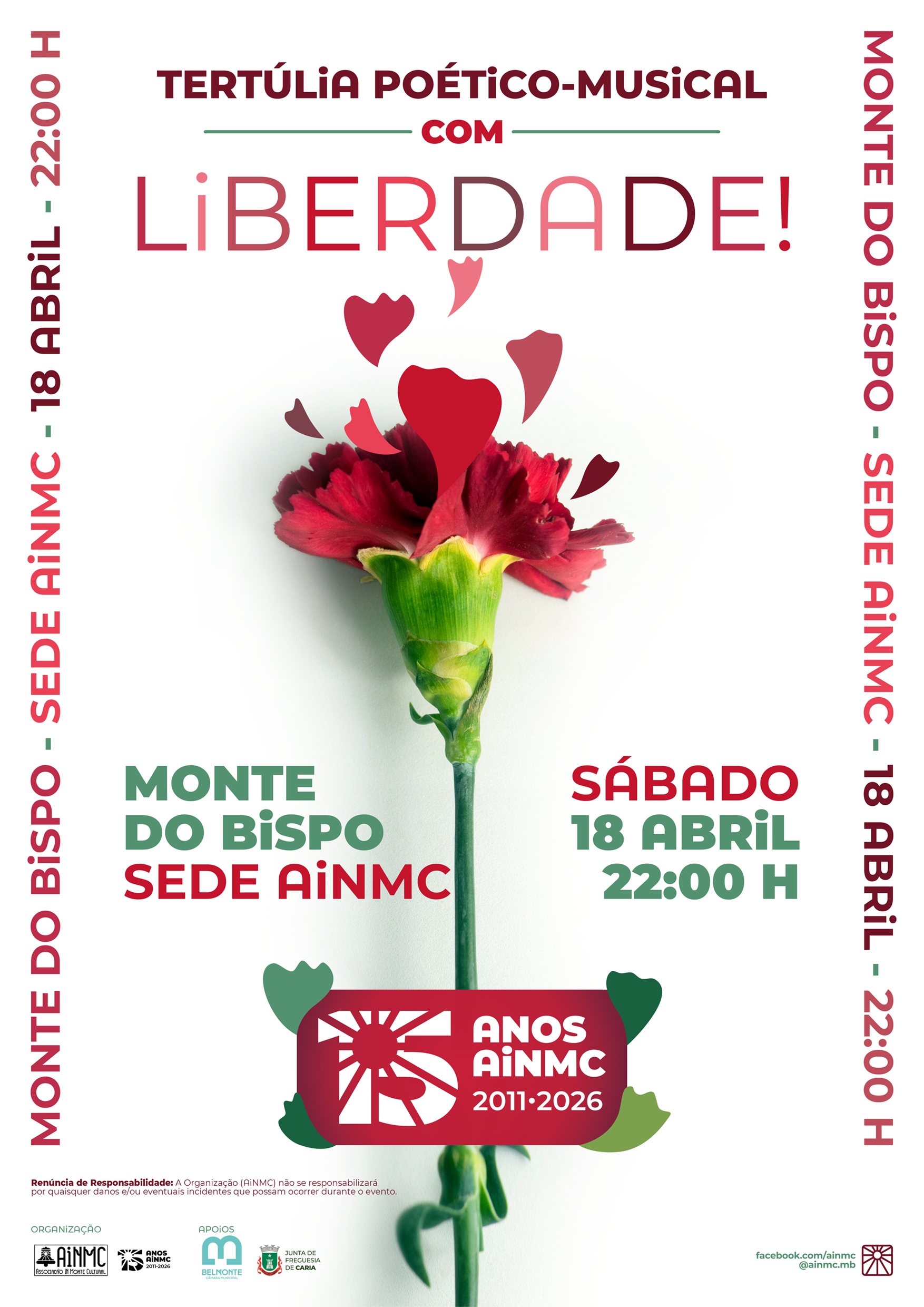 Uma noite onde a palavra se faz arma e a música se torna caminho. Junte-se a nós numa tertúlia poética e musical dedicada à Liberdade. Entre acordes da música de intervenção e as vozes dos nossos poetas locais e regionais, celebraremos a poesia do mundo e o eterno ideal de Abril.